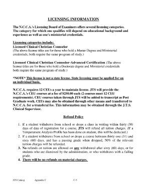 N.C.C.A. requires 12 CEUs a year to maintain license. JTS will provide the