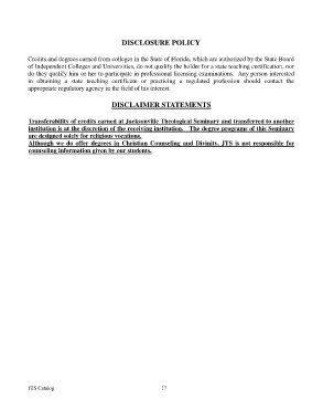 Page 19 - Jacksonville Theological Seminary Catalog 2016-2017