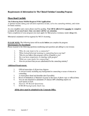 A spiritual resume stating your salvation experience & date, call to the counseling ministry, and vision