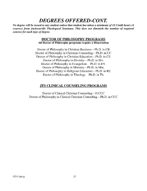 courses) from Jacksonville Theological Seminary. This does not diminish the number of required