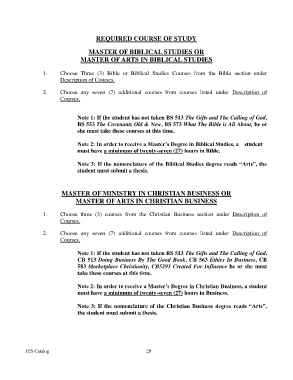 Note 2: In order to receive a Master’s Degree in Biblical Studies, a student