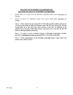 Note 2: In order to receive a Master’s Degree in Worship Leadership, a student