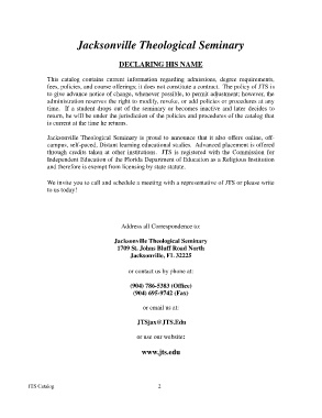 Page 4 - Jacksonville Theological Seminary Catalog 2016-2017