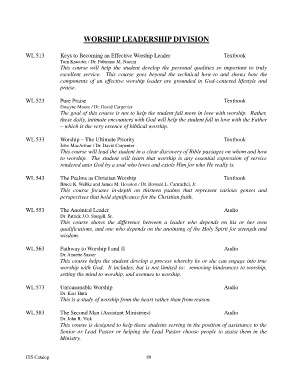 WL 513 Keys to Becoming an Effective Worship Leader Textbook