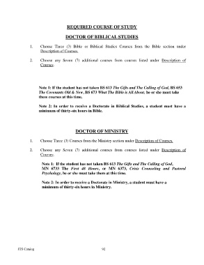 Note 2: In order to receive a Doctorate in Biblical Studies, a student must have a