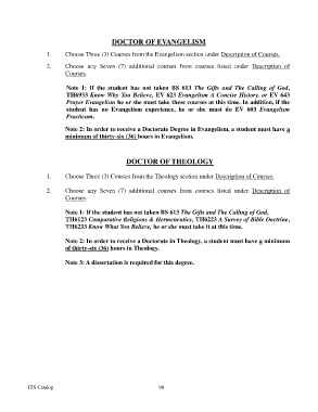 Note 2: In order to receive a Doctorate in Theology, a student must have a minimum