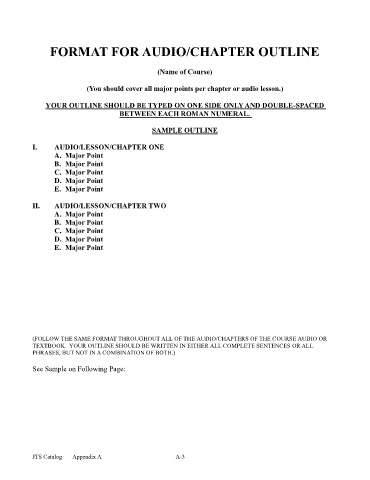 FORMAT FOR AUDIO/CHAPTER OUTLINE