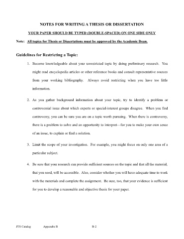NOTES FOR WRITING A THESIS OR DISSERTATION