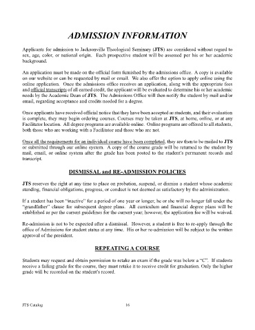 Page 18 - Jacksonville Theological Seminary Student Catalog