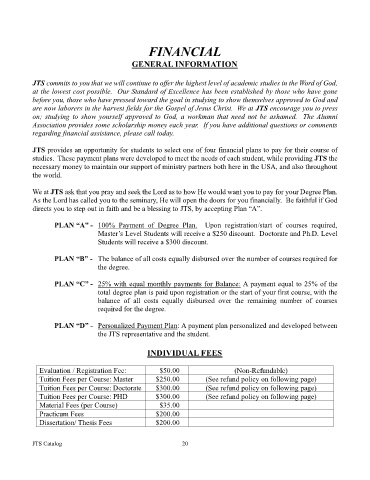 studies. These payment plans were developed to meet the needs of each student, while providing JTS the