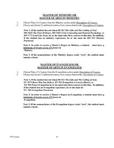 Note 2: In order to receive a Master’s Degree in Ministry, a student must have a