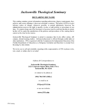 Page 4 - Jacksonville Theological Seminary Student Catalog