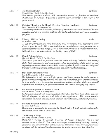 Page 65 - Jacksonville Theological Seminary Student Catalog