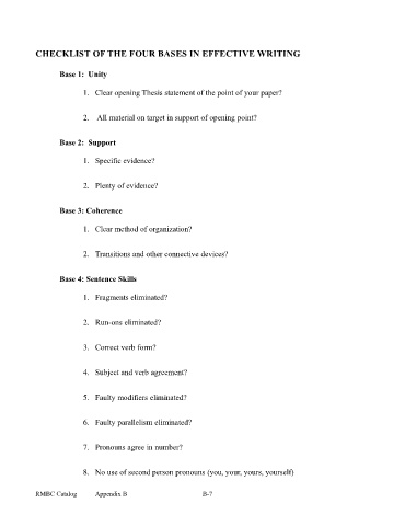 CHECKLIST OF THE FOUR BASES IN EFFECTIVE WRITING