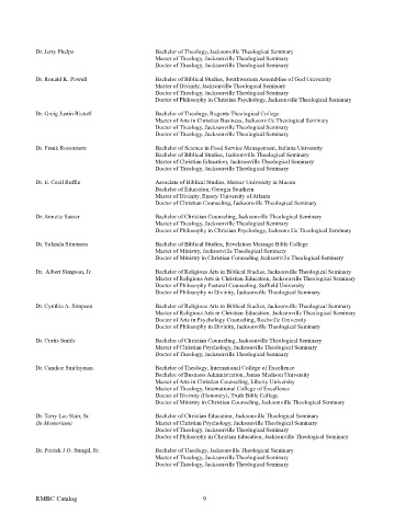 Dr. Cynthia A. Simpson Bachelor of Religious Arts in Biblical Studies, Jacksonville Theological Seminary