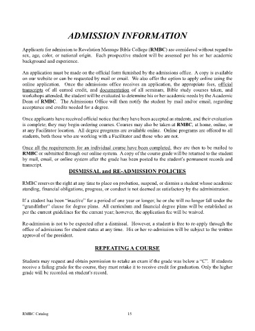 Applicants for admission to Revelation Message Bible College (RMBC) are considered without regard to