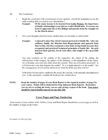 Each section of your written work: Outline, Essay and Book Report should have a cover page as well as