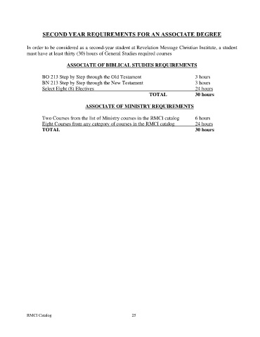 In order to be considered as a second-year student at Revelation Message Christian Institute, a student
