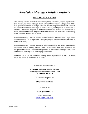 fees, policies, and course offerings; it does not constitute a contract. The policy of RMCI