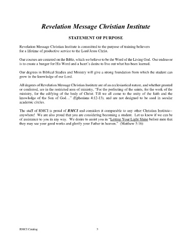 All degrees of Revelation Message Christian Institute are of an ecclesiastical nature, and whether granted