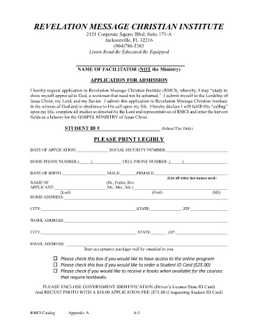 Jesus Christ, my Lord, and my Savior. I submit this application to Revelation Message Christian Institute