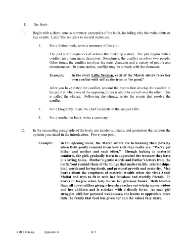 1. Begin with a short, concise summary (synopsis) of the book, including only the main points or